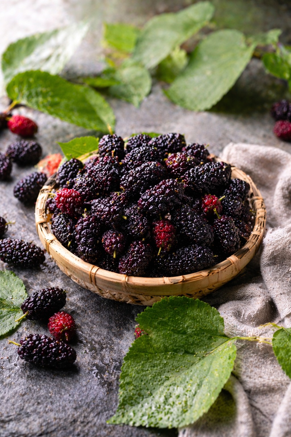 我們依季節流替追蹤全球最優質的桑葚園。只選取顏色深紫近黑、甜度與酸度比例完美的完熟果實進行凍存。
