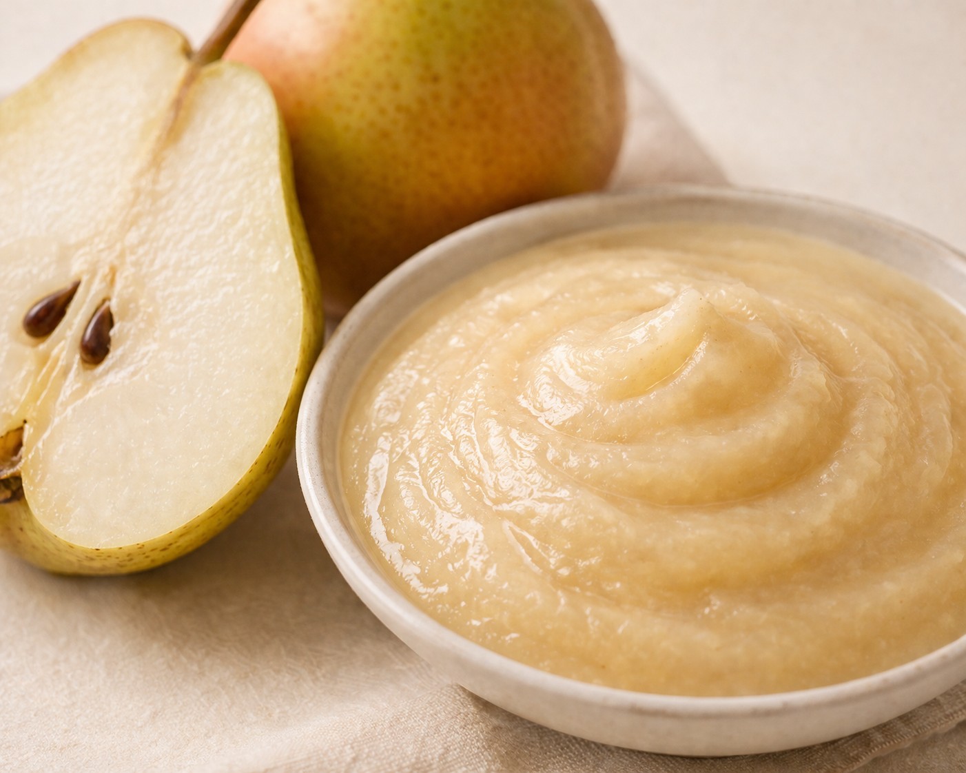 將梨泥混合鮮奶油或製成鏡面淋醬。它那淡雅不搶戲的清甜,能完美提升甜點的層次與質感。